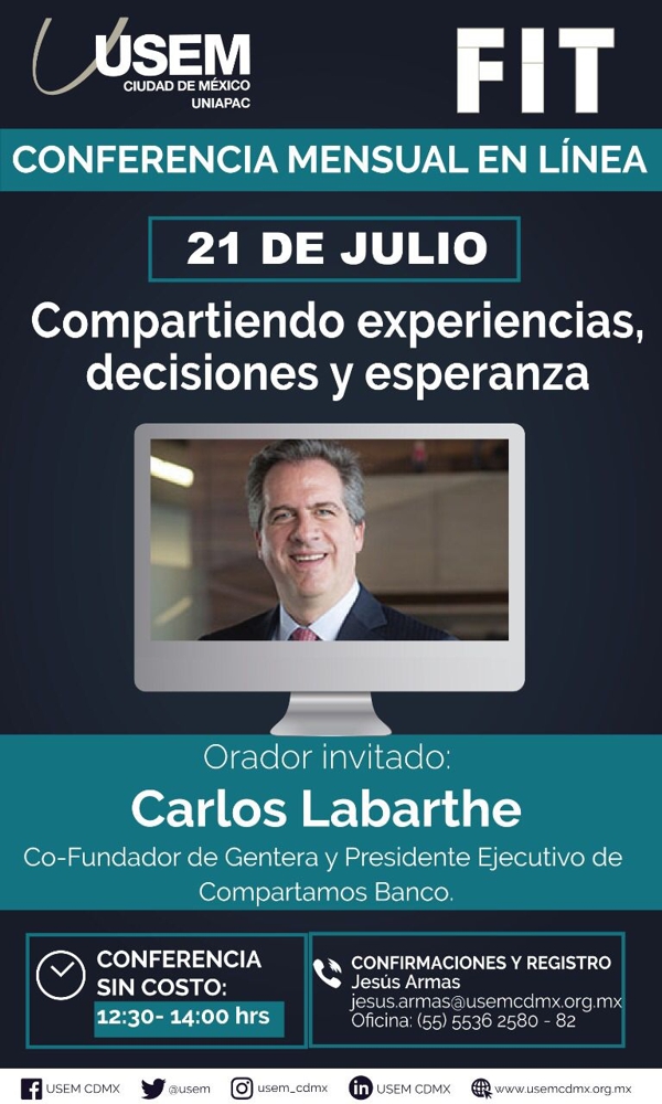 Te invitamos a la Conferencia mensual de julio de USEM, este 21 de julio a las 12:30 hrs, con el tema: "Compartiendo experiencias, decisiones y esperanzas" vía Zoom.