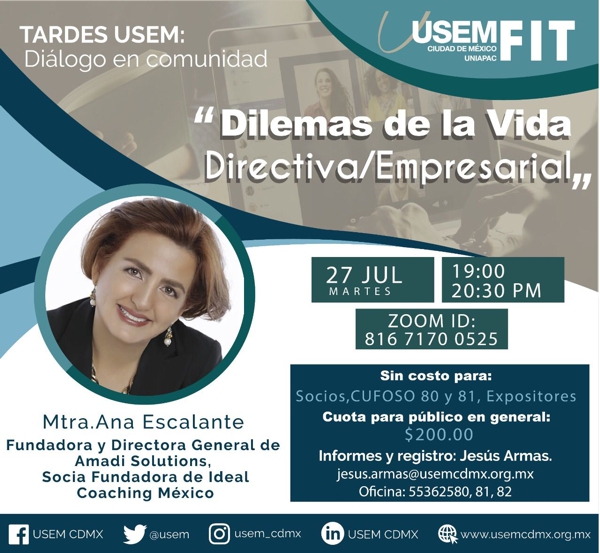 Sesiones USEM CDMX invita al Diálogos en Comunidad, con el tema 'Dilemas de la vida directiva - empresarial'