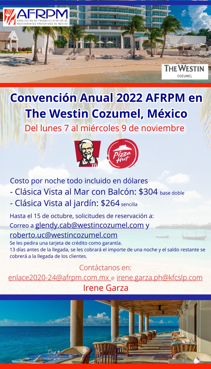 Espera noticias de nuestra convención en noviembre de este año, en Cozumel, habrá grandes invitados, como speakers, nuestros directivos aliados de KFC y PH, y dónde. Compartiremos experiencias y proyectos.